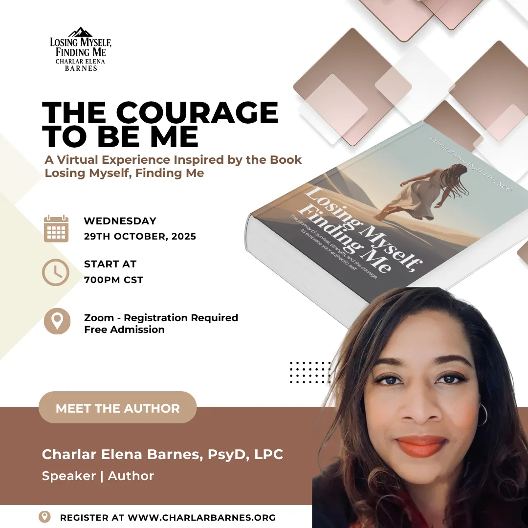 Dr. Charlar Elena Barnes, PsyD, LPC, is a decorated Gulf War Veteran, Licensed Professional Counselor, and author whose life embodies survival, strength, and grace. Her debut book, Losing Myself, Finding Me, chronicles her journey through trauma, healing, and rediscovery—and invites readers to embrace the power of authenticity without apology.